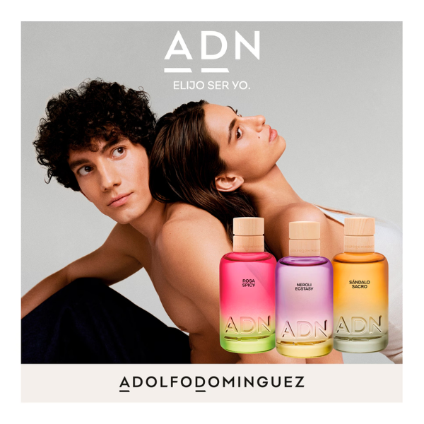 Sándalo Sacro es parte de la nueva colección, ADN, de Adolfo Domínguez. Una colección de Eau de Parfum, genderless, a base de aceites esenciales que potencian tu identidad.