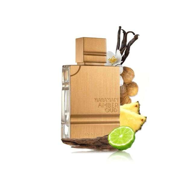 Amber Oud Gold Edition de Al Haramain Perfumes es una fragancia de la familia olfativa Oriental Vainilla para Hombres y Mujeres. Amber Oud Gold Edition se lanzó en 2018. Las Notas de Salida son bergamota y notas verdes; las Notas de Corazón son notas dulces, melón, piña y ámbar; las Notas de Fondo son almizcle, vainilla y notas amaderadas.