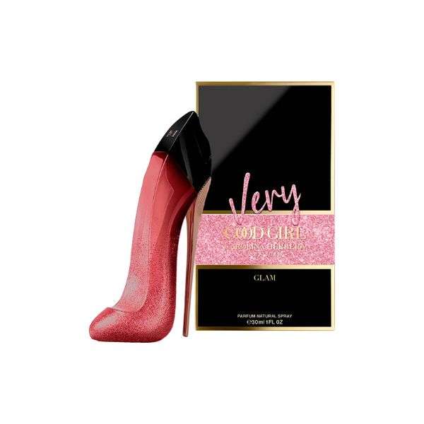 Very Good Girl Glam Parfum es una oda al poder de la feminidad, una fragancia audaz y brillantemente atrevida definida por su efervescente fragancia a cereza y su frasco en forma de zapato de tacón.