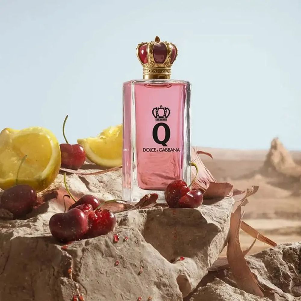 Q por Dolce&Gabbana es una fragancia con notas florales y frutales, enriquecidas por una fuerte base amaderada. El fresco aroma de limones sicilianos combinada con el contraste entre el dulce y ácido sabor de las cerezas da a este perfume una esencia refinada y atrevida a la vez.
