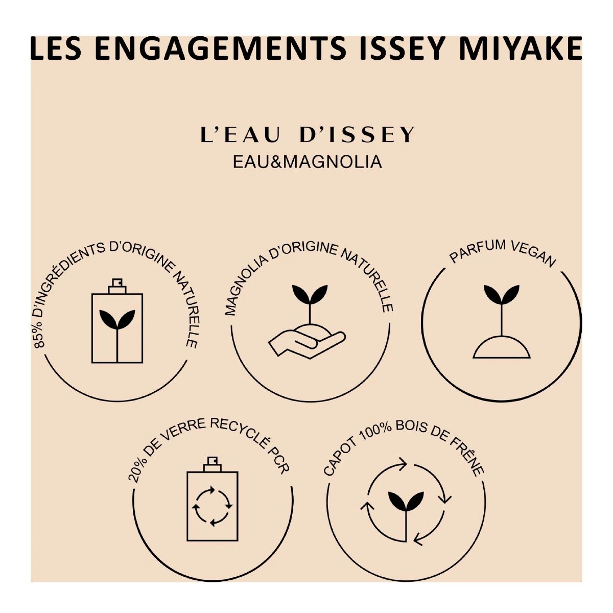 Treinta años después del lanzamiento de L’Eau d’Issey, Issey Miyake reinventa la forma en la que el agua interactúa con la naturaleza. En L’Eau d’Issey Eau&Magnolia Eau de Toilette Intense, la pureza del agua avanza por la naturaleza hasta encontrarse con la delicadeza etérea de la flor de magnolia.