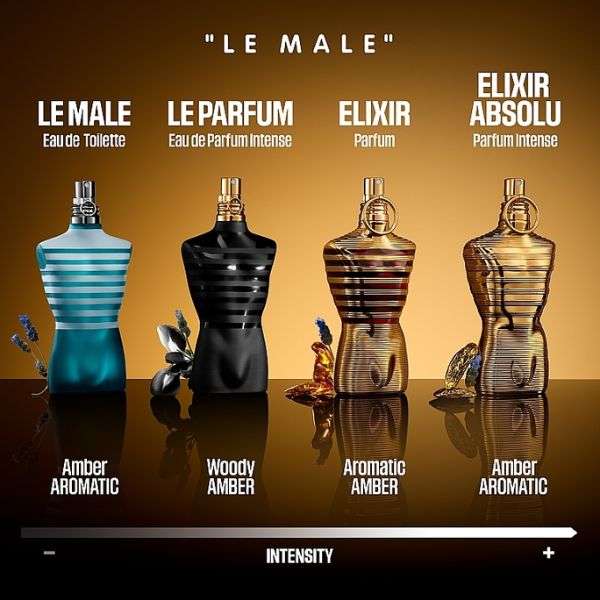 La esplendorosa intensidad del eau de parfum Le Male Elixir Absolu de Quentin Bisch Un Male extraordinario caldea el ambiente con un intenso aroma ambarino especiado. En la proa, el sensual color dorado de una provocadora ciruela nos arrastra hasta el corazón envolvente de la legendaria lavanda de Le Male. A flor de piel, los sentidos se izan por completo gracias a la resplandeciente pepita de una haba tonka poderosa e irresistible. La abrasadora odisea de este elixir absoluto no ha hecho más que empezar.