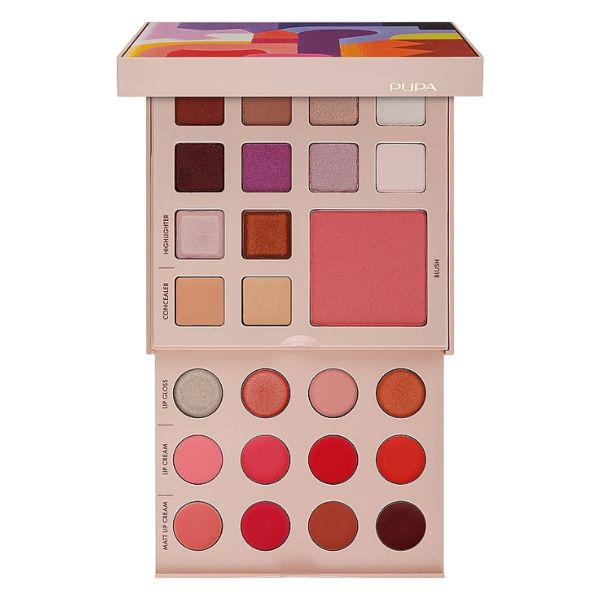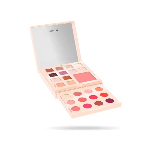 La paleta de maquillaje de la marca Pupa encarna la feminidad, la delicadeza y la sofisticación. Incluye sombras de ojos lujosas y ultramodernas con efectos mate y brillantes, además de rubor. Esta paleta es perfecta para crear looks sutiles de día y maquillajes de noche impactantes. Además, gracias a sus ingredientes naturales, los productos interactúan suavemente con la piel, brindándole un cuidado exquisito.
