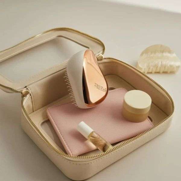 Nuestro cepillo desenredante para cabello apto para viajes, el Tangle Teezer Compact Styler, suaviza, da brillo y define en cualquier lugar. Ideal para tipos de cabello normales, controla los mechones sueltos y desenreda el cabello húmedo o seco con sus dientes flexibles de dos niveles que se deslizan por el cabello sin tirar y están protegidos por una cubierta con cierre a presión.